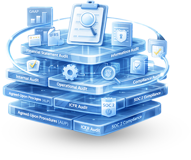 Comprehensive audits in accordance with GAAP or IFRS, supporting lenders, investors, and regulatory bodies.